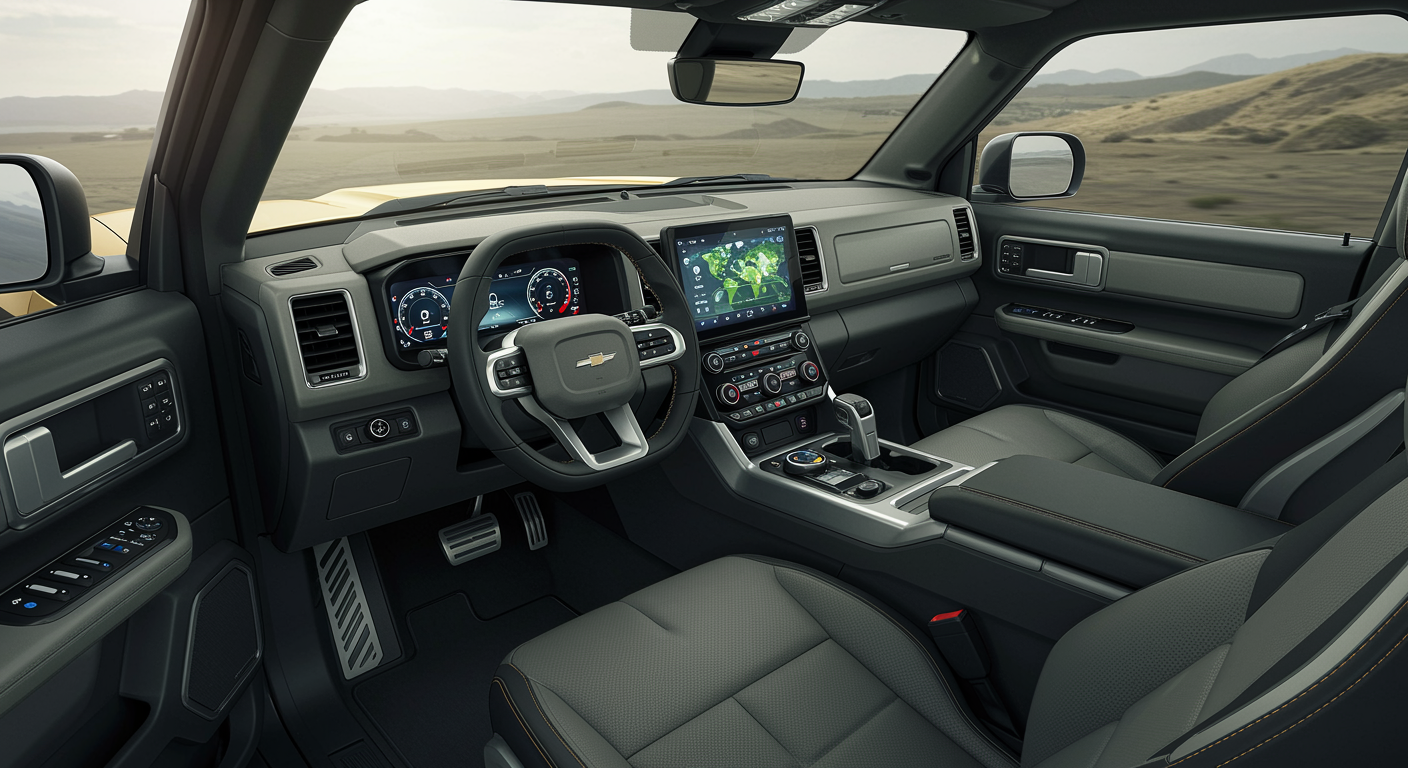 Imagine the interior of a futuristic Hummer where AI-driven design meets luxury and innovation. The cabin is a seamless blend of advanced technology and opulence, featuring intuitive interfaces and adaptive seating that morphs for comfort. Sleek holographic displays project from the dashboard, presenting real-time data and eco-awareness themes, while ambient lighting adjusts to moods and exterior conditions. Organic shapes inspired by nature are artfully integrated with sustainable materials, providing an aesthetic that harmonizes ruggedness with sophistication. Capture this vision of an AI-enhanced, eco-conscious Hummer interior, where technology and nature coexist in perfect balance.