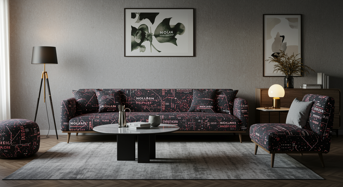 Envision a sophisticated living room seamlessly blending futuristic AI-driven design elements with the cozy elegance of a classic parlor, where sleek, responsive furniture adorned with interactive digital fabric subtly hints at the latest "nolan interior promo code" through dynamic patterns. Ambient lighting adjusts intelligently to the time of day, casting a serene glow on walls that subtly rearrange textures based on occupants' moods, illustrating the harmonious coexistence of cutting-edge technology and timeless comfort.