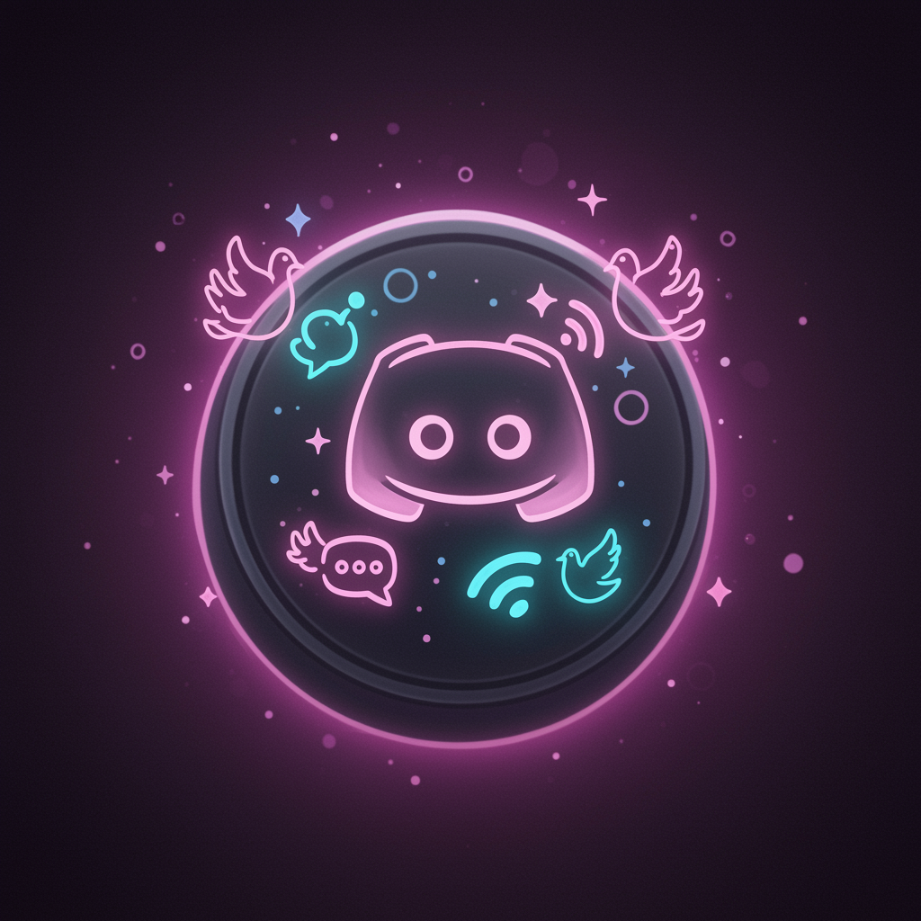 Design an enchanting, mystical realm encapsulated in a compact, circular frame that embodies the essence of seamless connectivity and vibrant communication, featuring whimsical symbols like chat bubbles morphing into doves and playful digital waves, all rendered with an ethereal glow to capture the spirit of online harmony, perfectly encapsulating the allure of a "discord icon size".