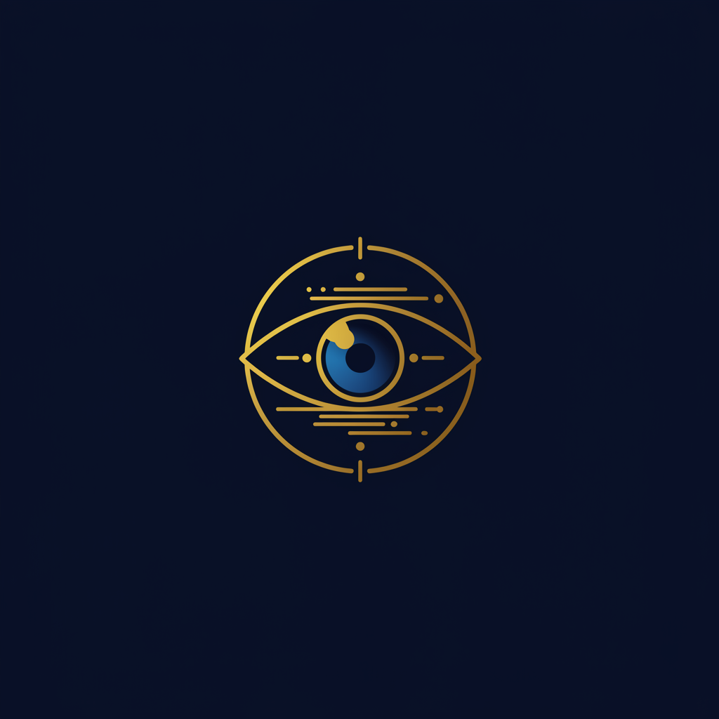 "Design an abstract, futuristic icon representing the essence of 'outlook', capturing the convergence of past, present, and future in a single, minimalist graphic. Incorporate elements that suggest vision, perspective, and forward-thinking, using an imaginative blend of an eye, a compass, and a horizon line. Utilize a color palette that symbolizes clarity and innovation, with gradients that transition from deep blues to bright golds, embodying the dynamic and ever-evolving nature of possibilities and foresight."