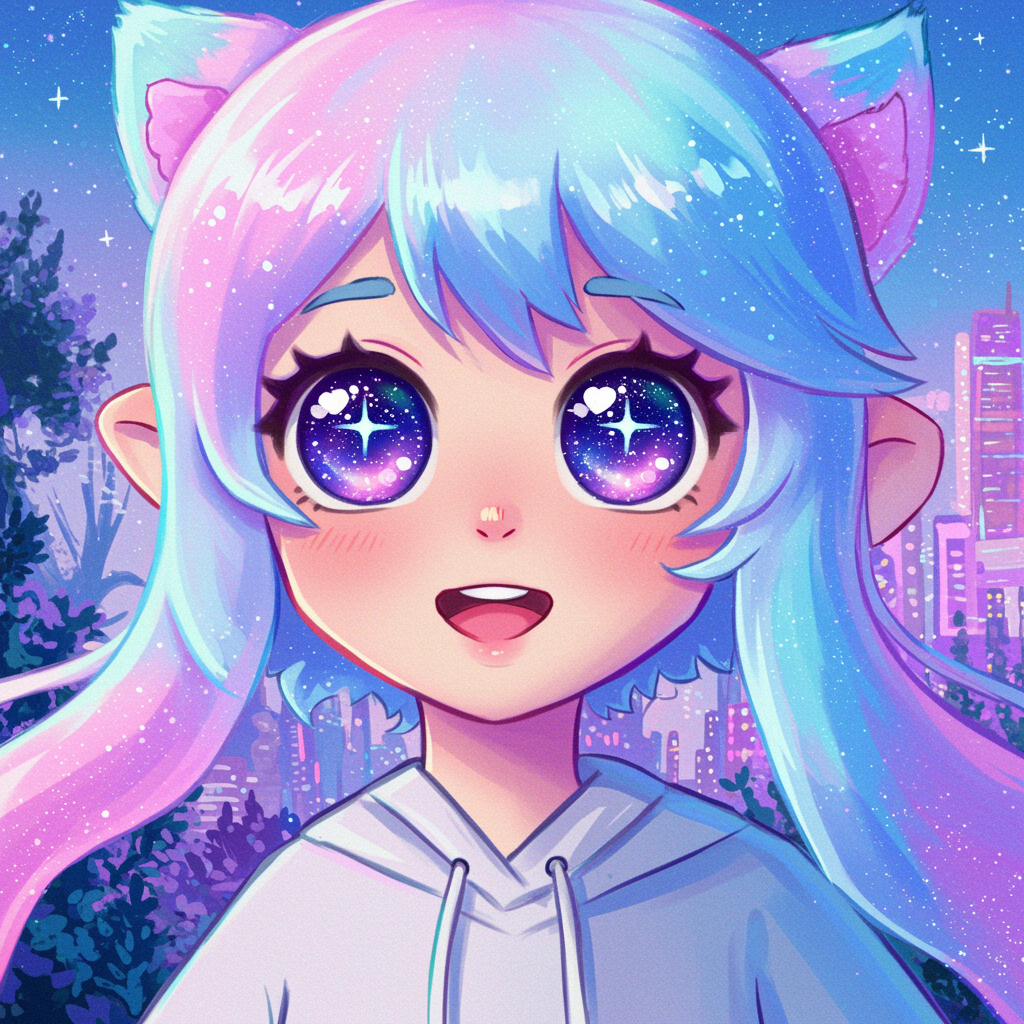 Envision a vibrant anime-inspired profile picture featuring a whimsical character with oversized, expressive eyes sparkling like tiny galaxies; their pastel-colored hair flows effortlessly, mirroring a starlit night sky. The background is an enchanting blend of mystical forests and futuristic cityscapes, symbolizing the dual nature of adventure and modernity. This character embodies both youthful playfulness and an air of mystery, capturing the essence of someone who navigates between fantasy realms and digital landscapes with ease, while their gentle smile hints at untold stories and boundless imagination.
