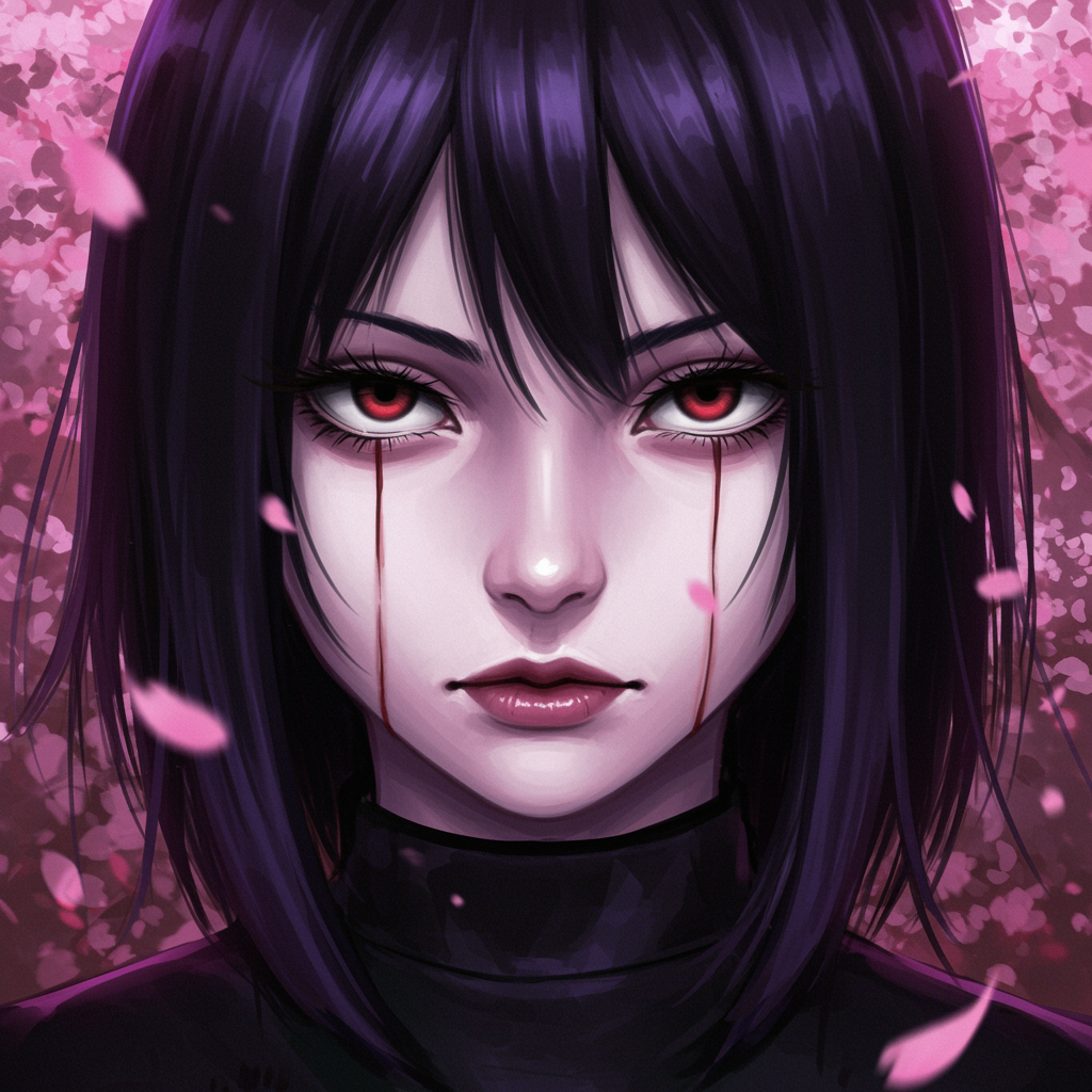 Imagine a digital portrait of Ayano Aishi capturing her enigmatic and intense personality: her piercing gaze is directed at you, eyes reflecting an unsettling blend of determination and obsession. Her ebony hair frames her pale, expressionless face with jagged edges, giving a sense of both elegance and menace. In the background, faint echoes of a cherry blossom petals drift softly, juxtaposing her dark attire with a splash of delicate color. The overall composition should evoke a sense of mystery and intrigue, perfectly encapsulating her complex nature in an immediately striking and memorable way.
