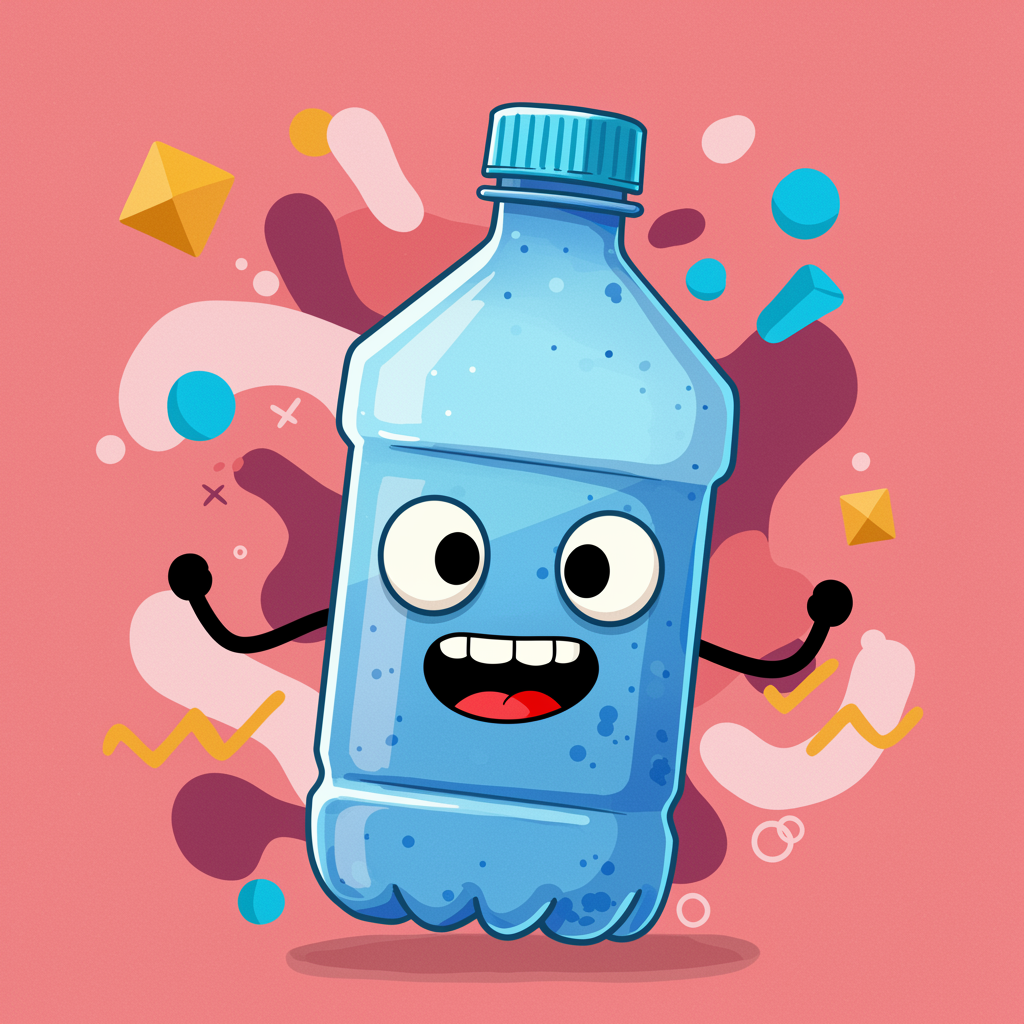 Create an imaginative profile picture inspired by the world of BFDI, featuring a vibrant, animated character fashioned from inanimate objects like a quirky, blue-tinted water bottle, adorned with expressive cartoon eyes and a wide, mischievous grin, set against a dynamic, abstract background with playful elements like floating geometric shapes and swirling colors, capturing the essence of humor, spontaneity, and charm typical of the BFDI universe.