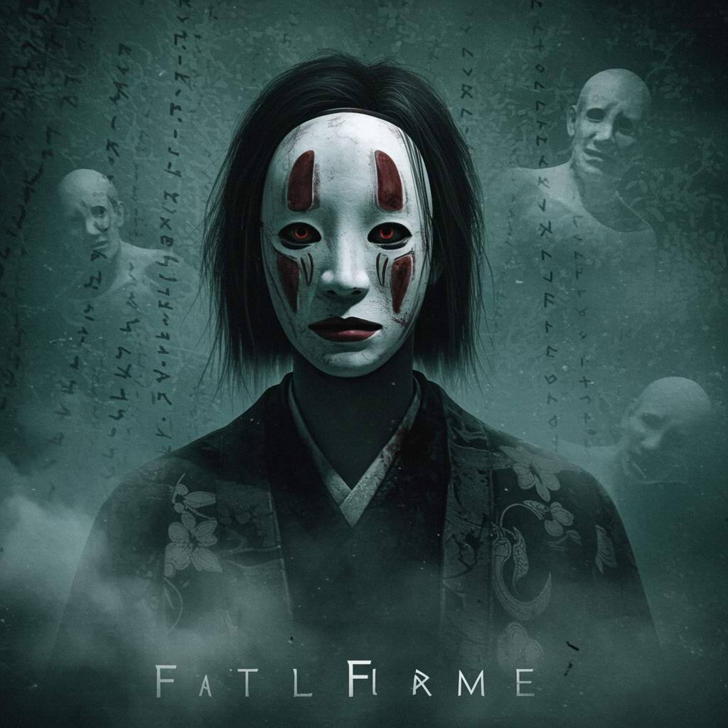 An ethereal portrait for a profile picture, capturing the haunting essence of "Fatal Frame" with a spectral figure emerging from misty shadows, their face partly obscured by a traditional Japanese Noh mask, eyes deep with stories of the otherworldly; the background subtly textured with ancient, barely visible runes and faint whispers of ghostly apparitions, creating an atmosphere of mystery and intrigue that blurs the line between reality and the supernatural.