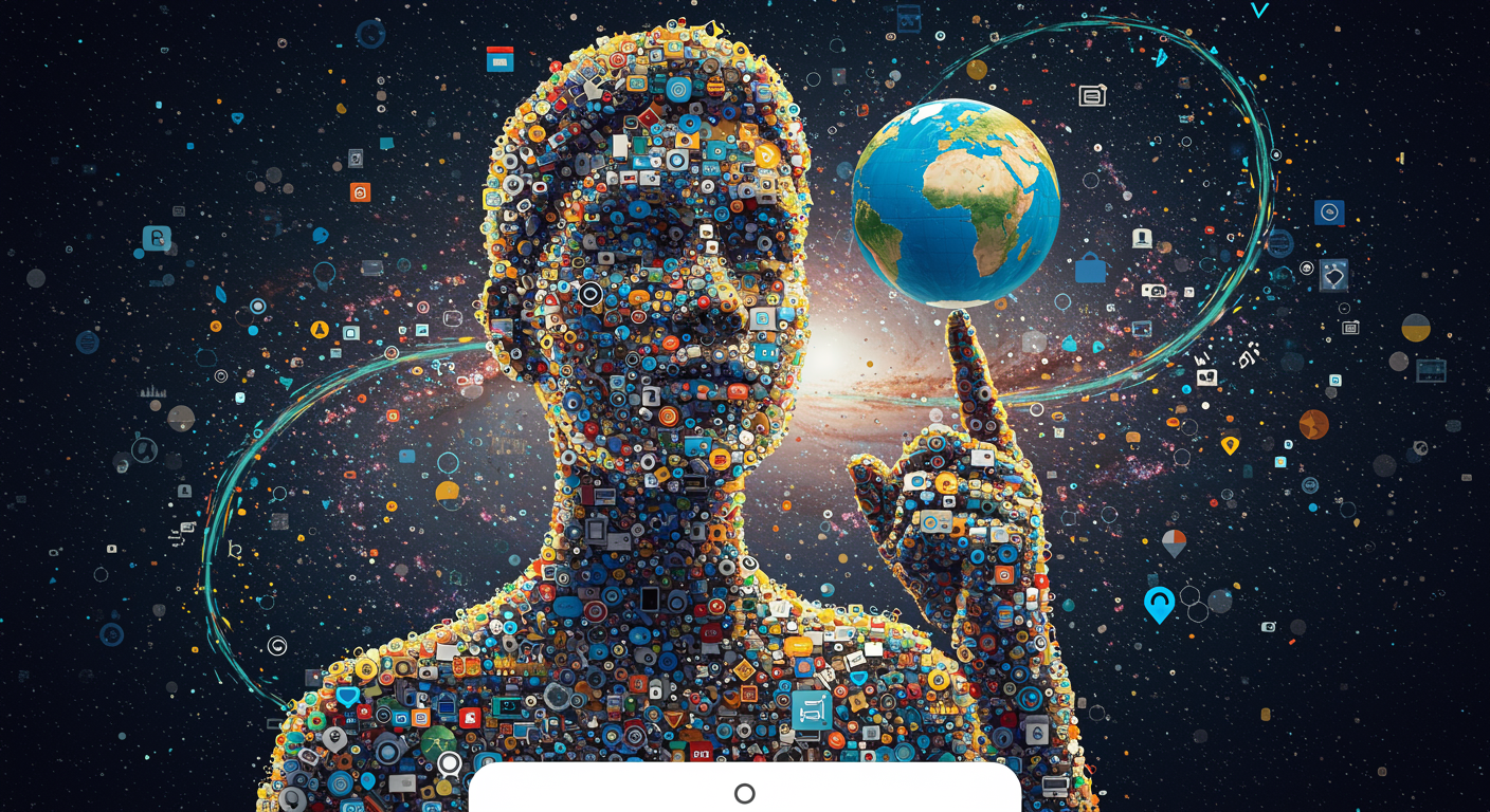 Imagine a vibrant digital portrait of a user composed entirely of intricate interconnected elements symbolizing the vastness and diversity of Google: swirling galaxies of search engine history, abstract data streams flowing like colorful rivers across the canvas, tiny icons representing every Google service and app forming a mosaic of the user's online identity, amidst this backdrop, the central figure playfully balances a globe on their fingertip, embodying the spirit of global connectivity and innovation that defines Google, all encapsulated in a dynamic, eye-catching profile picture.