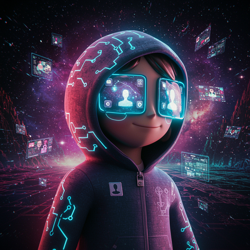 Imagine a pfp where Kenny, a character of distinct personality, is depicted as a futuristic explorer navigating a digital universe. His classic hood is reimagined with glowing circuitry patterns, and his eyes are vibrant screens reflecting social media icons like constellations in a cosmic sea. Surrounding him are ethereal digital elements that symbolize connectivity and pixelated galaxies, embodying a cyberpunk aesthetic filled with neon hues and surreal landscapes. This pfp is a portal into a world where digital identity meets boundless exploration.