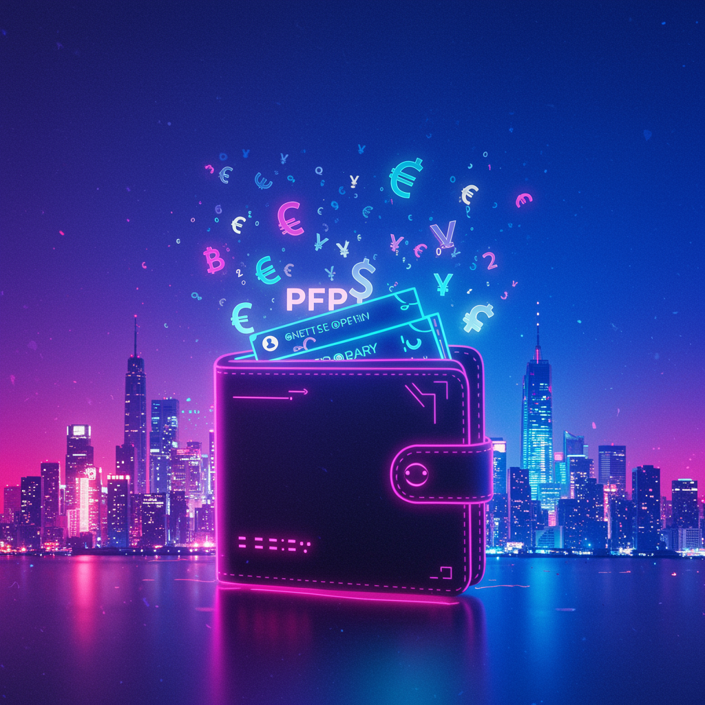 Create a profile picture that captures the essence of "nettspend pfp," featuring a futuristic digital wallet blending into a vibrant, cybernetic cityscape. The wallet glows with neon lights, emitting streams of data bits and currency symbols that weave through skyscrapers like shimmering digital networks. The skyline reflects in the wallet, symbolizing endless possibilities and connectivity in the social media world. The background is a spectrum of blues and purples, adding depth and intrigue, while a silhouette of a smiling, tech-savvy avatar emerges from the wallet, embodying the spirit of modern digital interaction and self-expression.