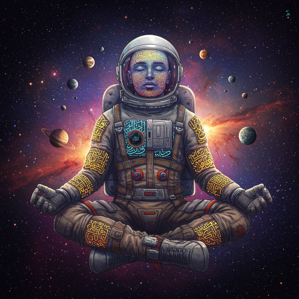Imagine a vibrant and intricate digital illustration of an "osamason pfp," featuring a cybernetic astronaut meditating in the infinite cosmos. The astronaut's space suit is adorned with glowing, fractal patterns that pulse with energy, reflecting a blend of ancient calligraphy and futuristic technology. Their helmet is transparent, revealing a composed face with eyes closed, merging their identity with the universe. Orbiting around them are miniaturized planets and swirling nebulae, each mirroring an aspect of peace and unity. The background is a mesmerizing tapestry of stars and galactic dust, creating a harmonious blend that symbolizes limitless exploration and introspection.