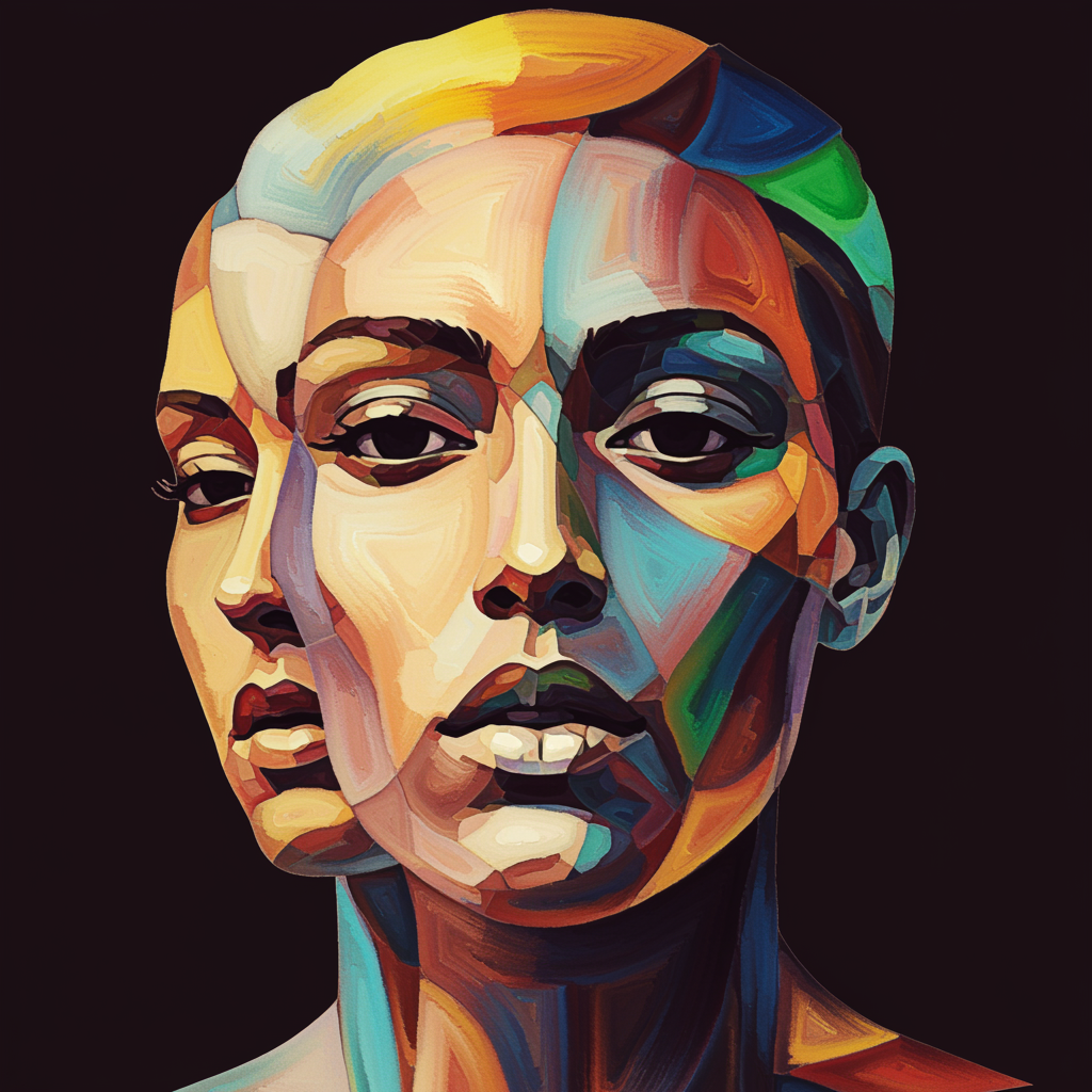 Imagine a whimsical collage of vibrant, abstract elements intertwining seamlessly to form the silhouette of a human face, each fragment representing a different facet of personality and emotion; vivid colors swirl into expressions that hint at mystery, joy, and curiosity, creating a playful yet sophisticated pfp that feels alive and infinitely expressive.