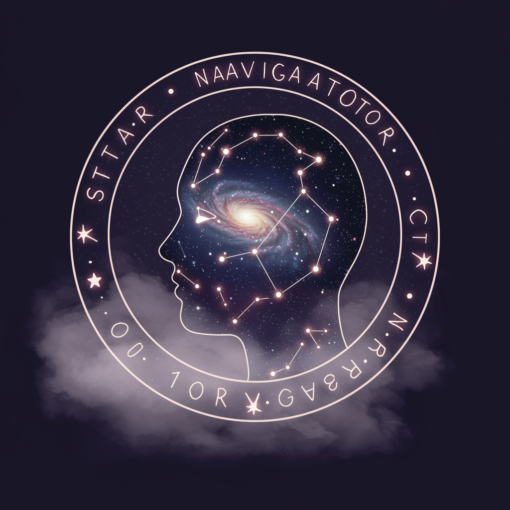 A whimsical digital artwork of a cosmic-themed profile picture where the viewer peers through a small, circular portal into a miniature universe. Inside, swirling galaxies and twinkling stars form the silhouette of a face, subtly blending into an intricate constellation pattern. Around the edges of the portal, ethereal mist carries the delicate, floating text "Star Navigator" in an elegant, glowing font, inviting each onlooker to explore the mysteries of their celestial identity.