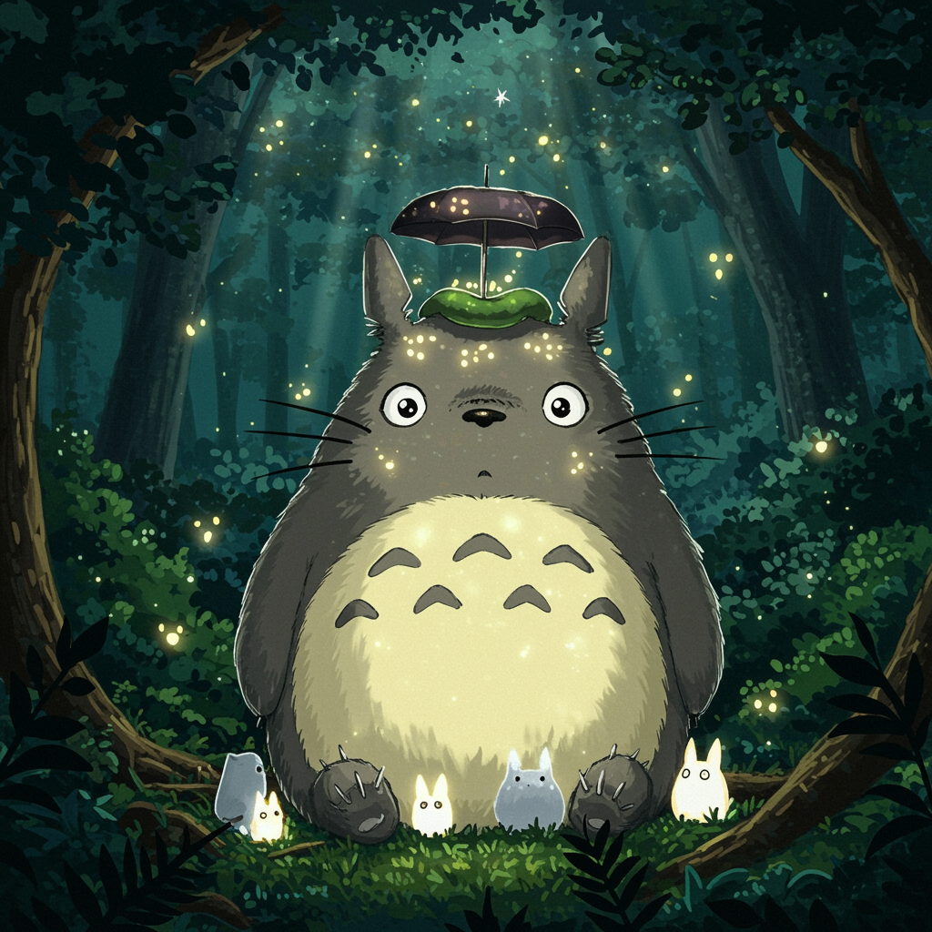 A whimsical and enchanting profile picture featuring Totoro nestled amidst a lush, magical forest, with gentle beams of moonlight cascading through the canopy, casting ethereal patterns across his fluffy fur; tiny, luminescent forest creatures gather around, creating a mystical aura, while Totoro's eyes sparkle with curiosity and wonder, evoking a sense of serene joy and timeless adventure in a world where nature's magic and folklore seamlessly intertwine.