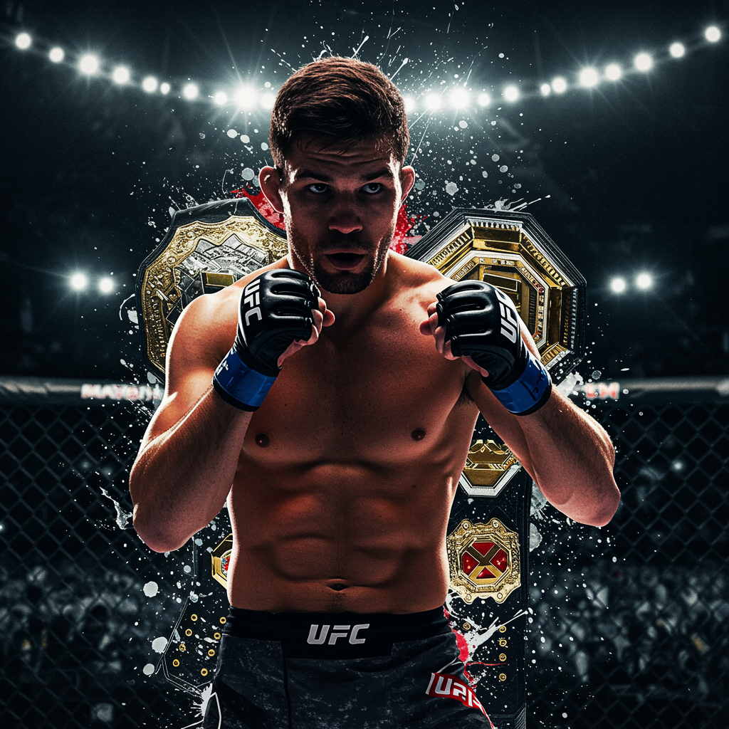 Imagine a UFC profile picture that captures the essence of a fighter: a sleek, dynamic silhouette of a figure in mid-fight, powerfully poised against a backdrop of an electrifying arena. The fighter's gloves are subtly adorned with a gradient of colors representing their national flag. Surrounding the silhouette are abstract, swirling elements symbolizing movement and energy, interwoven with faint outlines of iconic championship belts intertwined like laurels, subtly hinting at the fighter's journey through the rankings. The image is imbued with a sense of intensity and focus, creating a captivating visual that embodies the spirit of competition and triumph.
