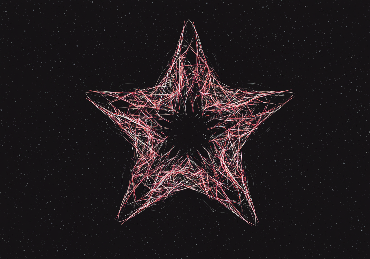 In a vast cosmic expanse, a glittering star floats majestically, composed entirely of intricate, glowing vector lines and curves, shimmering with a kaleidoscope of colors. This star, an abstract SVG work of art, radiates patterns of geometric precision and organic fluidity, with swirling galactic tendrils reaching out, casting a mesmerizing digital aura that merges the essence of celestial wonder and mathematical elegance in an awe-inspiring dance of light and form.