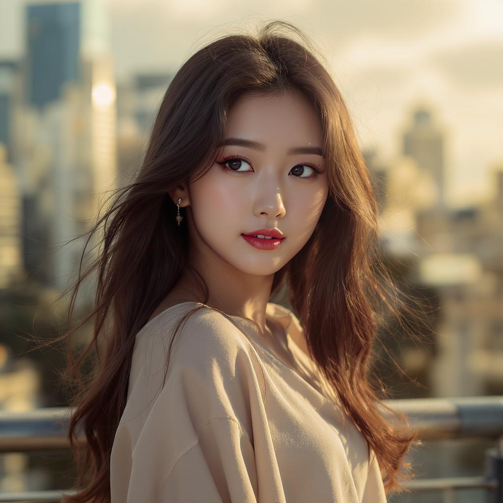 1girl, stunning Korean girl, immersive cityscape background, soft volumetric haze, dynamic global illumination, natural outdoor lighting, high detail RAW color photograph, life-like realism, ultra high resolution, intricate CG 8K wallpaper, advanced physics-based rendering, vivid realism, high contrast, hyperrealism, shot with an f1.6 lens, vibrant colors, hyper-realistic textures, inspired by cinestill 800 film, breathtaking atmosphere.
