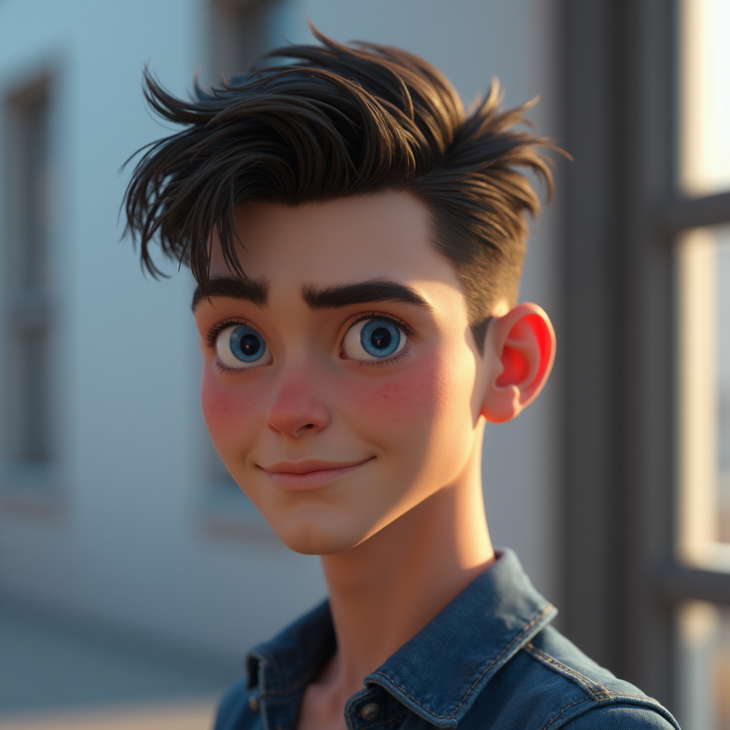 1man, solo, piercing blue eyes, intricately detailed, stunning, cinematic lighting, daytime, dynamic shadows, simple backdrop, depth of field, CG, casual attire, serene mood, vibrant colors, enhanced clarity, polished finish, error-free, high quality, side view, realistic CGI, youthful, confident, masculine, artistically rendered in 3D, plain setting, subtle, mature.