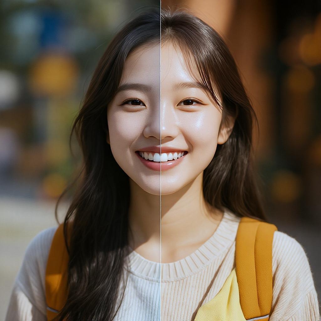 A vibrant 20-year-old woman, captured with a soft focus lens at f/2.8, set against an 8:11 aspect ratio backdrop that accentuates her youthful energy and charm, enhanced with artistic adaptations that maintain the essence of the original scene.
