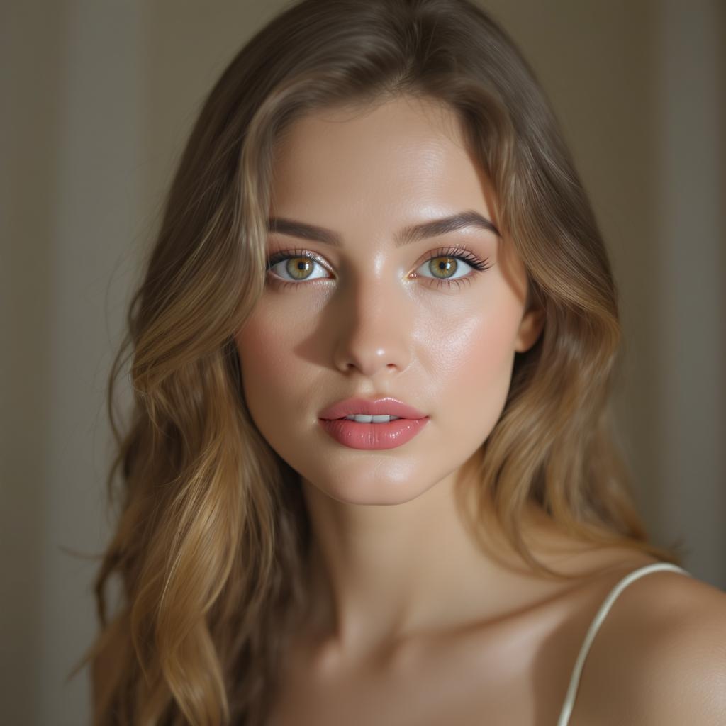 A young 20-year-old woman with a soft, radiant beauty, captured with a shallow depth of field at f/2.8 in a portrait format with an aspect ratio of 8:11, ensuring a classic yet dynamic composition with a hint of artistic flair.