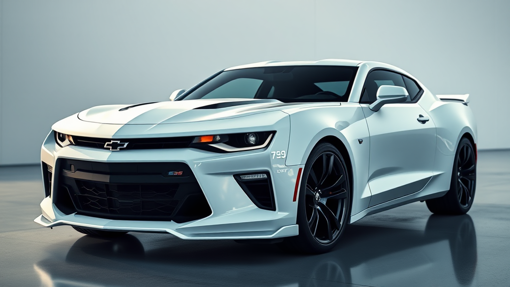 2020 Chevrolet Camaro SS in pristine white, showcased in a cinematic advertisement highlighting its sleek design and dynamic performance. Captured in Ultra-HD with 32k super-resolution, this visual masterpiece emphasizes every curve and detail, creating an immersive and high-definition experience that exudes power and elegance. Subtle enhancements in lighting and angles amplify the car's presence, making it the ultimate embodiment of modern automotive artistry.