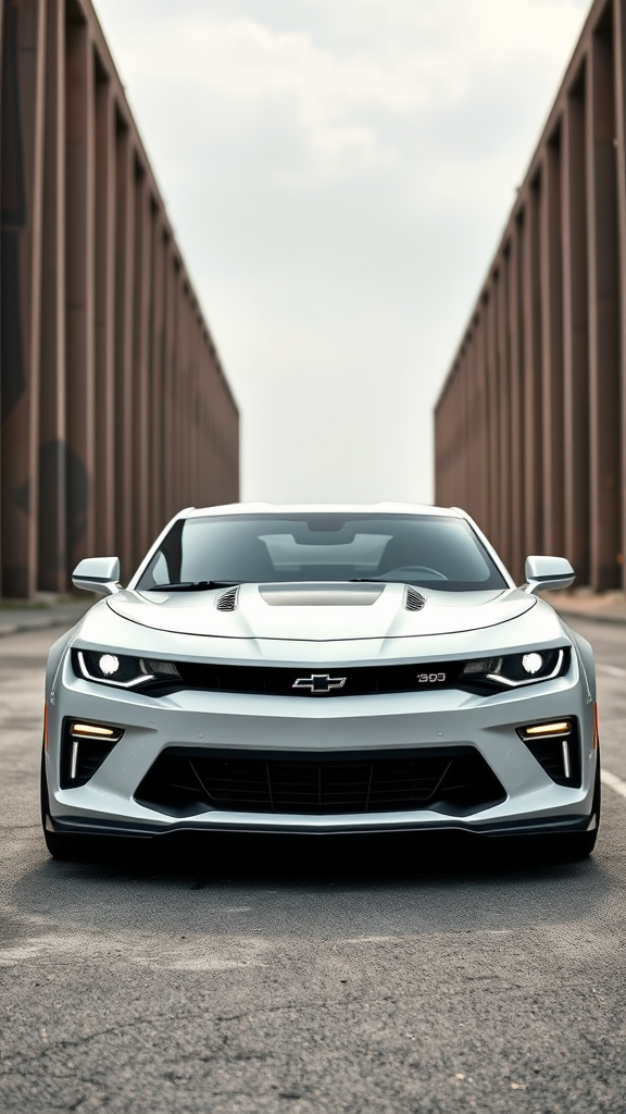 2020 white Camaro SS, sleek and powerful, showcased in an epic cinematic style, ultra-HD super-resolution detailing every curve and line, capturing the essence of speed and luxury in crystal clear 32k quality.