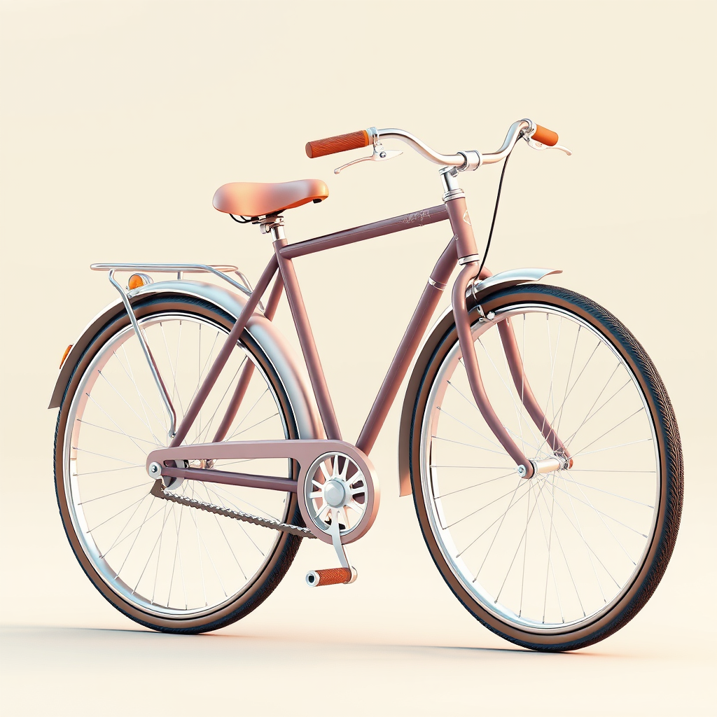 A 3D icon design of a vintage bicycle, featuring soft lighting that evokes a nostalgic feeling with pastel and vintage colors. The bicycle has classic design elements reminiscent of Jerry Pinkney's style, set against a clean and neutral background, creating a soft and muted color palette.