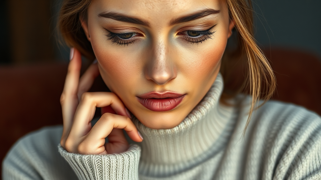 A beautiful Russian woman in a realistic setting, showcasing skin with a natural glow under Rembrandt lighting. She wears outfits typical of a counseling psychologist, and displays a variety of postures, sometimes appearing embarrassed. Her small stature is balanced by her peaceful expression and gentle breathing, which create a soothing atmosphere. The skin texture is detailed with hyperrealism and HDR effects, as if captured in a RAW, photorealistic 8k image. Dynamic lighting highlights her delicate lips, graceful fingers, and finely detailed eyes, reminiscent of real human skin in paintings and sketches. The composition steers clear of distortions, maintaining anatomical accuracy while emphasizing beauty, detail, and natural human elegance.