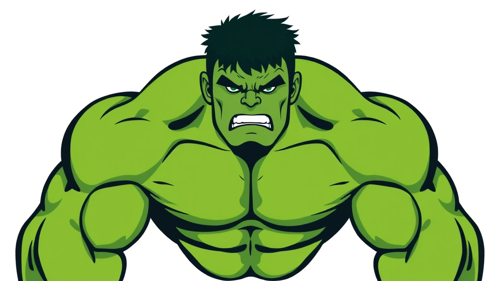 A bold, symmetrical illustration of the Hulk in a minimalist, flat icon style, with slightly exaggerated muscular features and vibrant green hues, incorporating subtle texture details for added depth and a dynamic expression to convey strength and intensity.