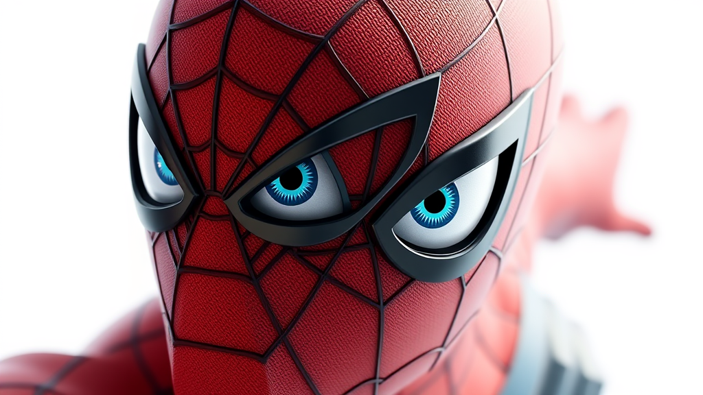 A breathtaking 8k glazed 3D render featuring a Pixar-style Spider-Man with textured skin and incredibly detailed eyes, blending a unique hasdx flair with Disney-inspired charm. The scene is set against a pristine white background, showcasing a high-resolution, beautifully crafted character with vibrant colors and exquisite details in every aspect.