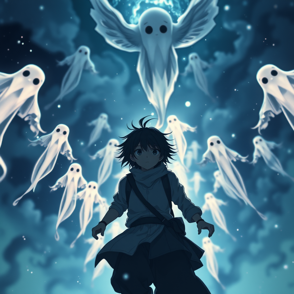 A breathtaking anime scene inspired by Hayao Miyazaki, where ethereal ghosts carry away a protagonist through a mystical world, depicted in 8k resolution and HD clarity. The scene features exquisite contour lighting, creating a striking interplay of high contrast and depth of field. Ultra-detailed photorealism captures the essence of cinematography, emphasizing a sense of gigantism and awe. The perspective is from the protagonist's eyes, immersing the viewer in a highly detailed, dark-toned atmosphere. Bokeh effects add a dream-like quality, while the epic frame showcases super realistic textures, encapsulating a surreal and mesmerizing adventure.