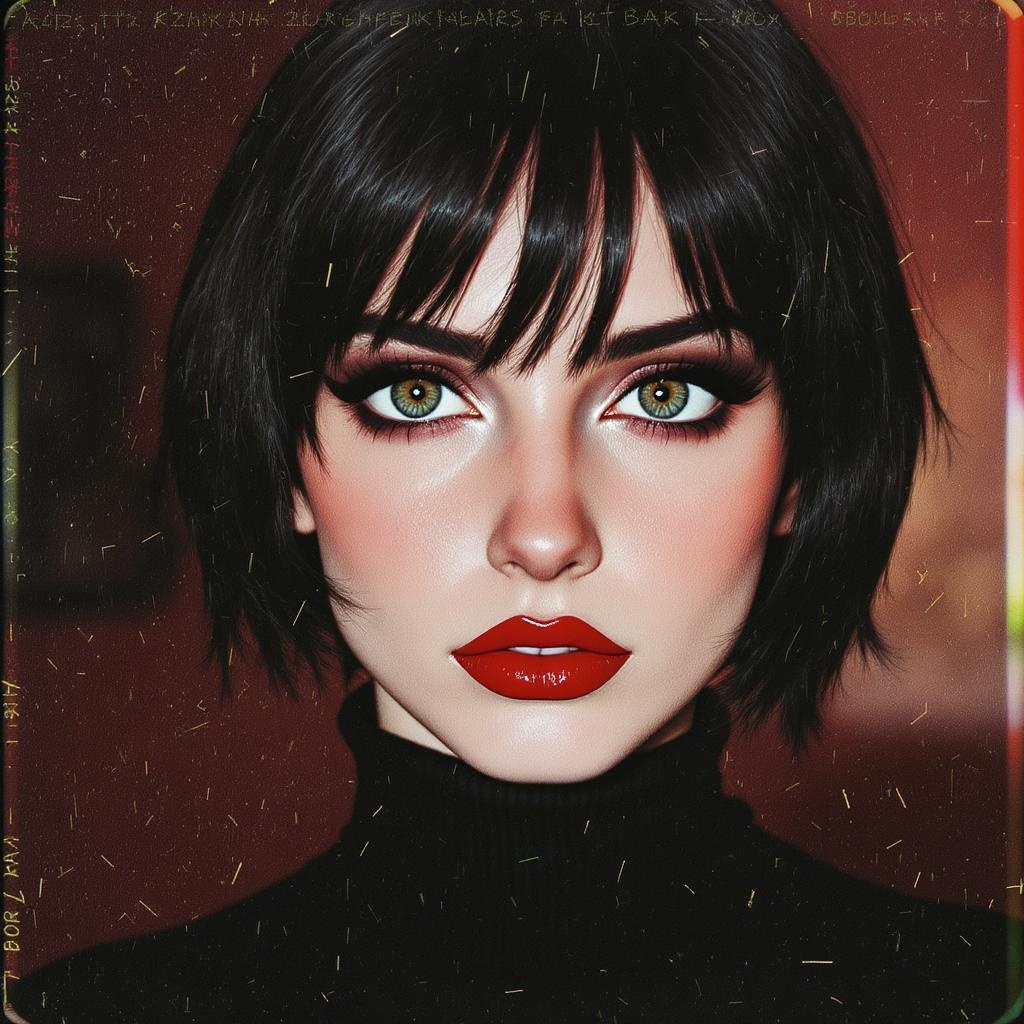 A breathtaking detailed full color portrait of a captivating woman in a black turtleneck, dynamic character composition, inspired by ilya kuvshinov, alessio albi, nina masic, with sharp focus and natural lighting, showcasing subsurface scattering, captured with an f2 aperture, 35mm lens, infused with film grain cartoon effects and subtle 3D elements, featuring a unique palette of unusual colors and softly blurred edges for an artistic touch.