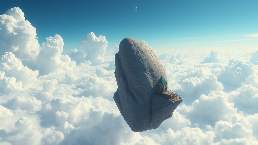 A breathtaking domicile hewn from a colossal asteroid, suspended majestically in the vast sky amidst ethereal clouds:: enchanting surreal dreamscape:: the beauty is utterly astonishing --ar 3:4 --q 2 --v 5
