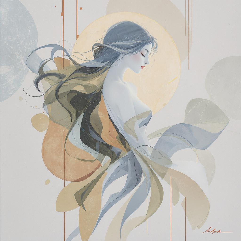 A breathtaking drawing of a woman, blending video montage style with nature-inspired art nouveau, featuring soft-focus elements and minimalist sketches. The piece showcases graceful curves and free, expressive brushwork, capturing an astonishing beauty. Envisioned in an aspect ratio of 1:2, this personalized creation embodies a stylized elegance, inviting admiration and awe.