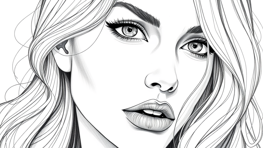 A breathtaking drawing of a woman, inspired by the distinctive styles of Kieron Gillen and Augustus John, featuring bold and expressive line work akin to Clayton Crain. The artwork is rendered in a light gray palette, highlighting intense close-ups that capture the woman's striking beauty. The composition is both imaginative and powerful, with a strong focus on detail and stylistic flair, creating a visually stunning piece that resonates with elegance and sophistication.