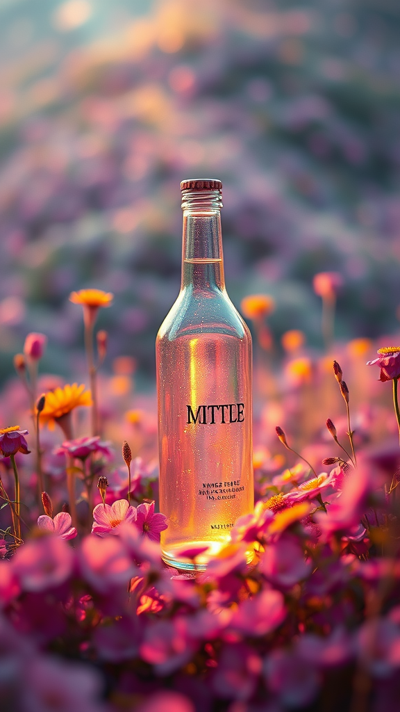 A breathtaking masterpiece, captured with a Nikon D850, encapsulating a dreamlike scene of colorful nature in soft pastel hues. A full bottle glows amidst this enchanting landscape, showcasing hyper-detailed photorealism reminiscent of Greg Rutkowski's artistry. Shot with an f/1.6 lens, the image boasts lifelike high resolution and sharp focus, with intricate atmospheric light refraction that provides stunning contrast. Utilizing Unreal Engine 5 for cinematic brilliance and Octane Render for vivid realism, this photography piece trends at CGSociety, standing as a pinnacle of intricate, detailed artistry.