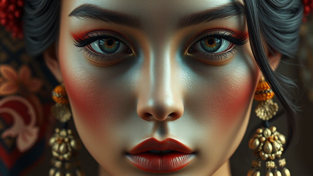A breathtaking masterpiece of the highest quality, showcasing a hyperrealistic and ultra-detailed face in cinematic glory. Crafted with the finest CG techniques and rendered in stunning 8k HDR using Unreal Engine and Octane Renderer. The seamless blend of raw, high art captures the essence of beauty with intricate details and lifelike textures suitable for a top-tier 4k resolution wallpaper. Despite the meticulous attention to detail and high-quality execution, the composition subtly incorporates elements of surrealism, presenting elongated features and artistic distortions. Retaining a sense of elegance and intrigue, it plays with traditional aesthetics without descending into kitsch or losing its sophistication, ensuring an image that remains both captivating and polished.