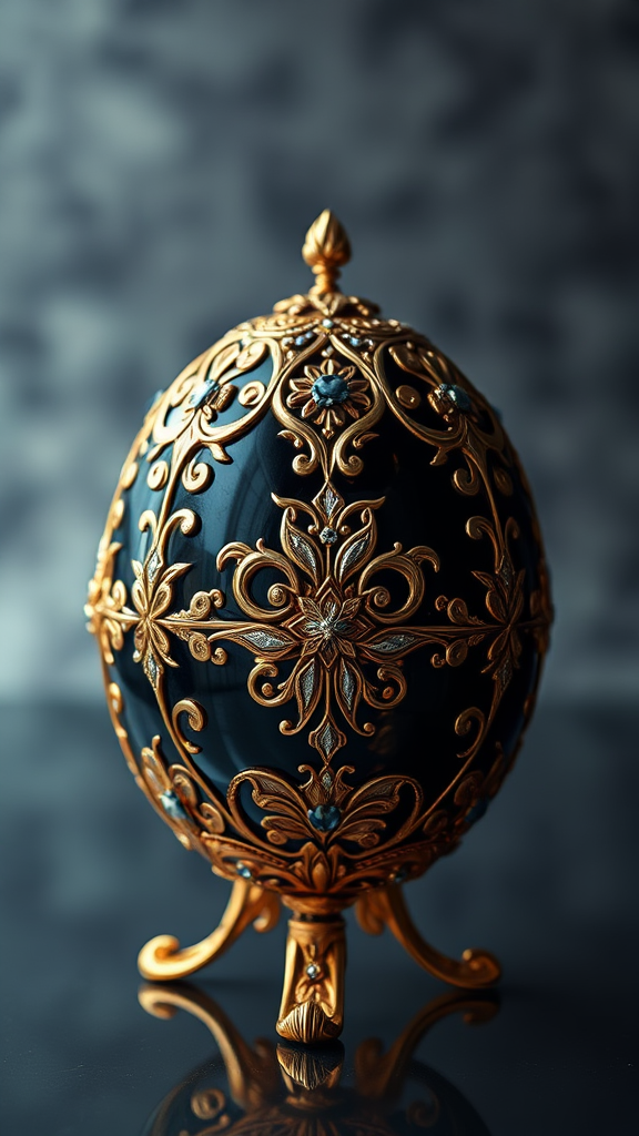 A breathtaking, ultra high resolution wallpaper showcasing an award-winning photograph of a Fabergé egg, featuring exquisite details and cinematic lighting. The composition adheres to the golden ratio, ensuring perfect balance and elegance. The masterpiece is in stunning 4k, capturing every intricate design with sharp focus and HDR quality, resulting in a visual feast that combines luxury and artistry seamlessly, crafted with the kind of precision that even a bad artist would envy.