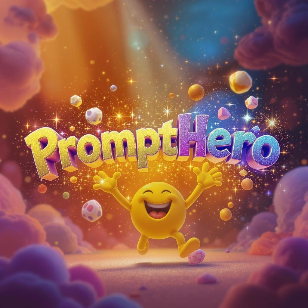 A breathtakingly detailed 3D render of an enchanting scene where the words "PromptHero" come to life as a vibrant, exuberant 3D character, radiating with excitement and playfulness. The character is set against a richly colored gradient background that transitions from warm oranges and golden yellows to cool blues and deep purples. With whimsical and exaggerated, cartoon-like features, the character showcases intricate textures and realistic lighting, conjuring the essence of a fantastical, dreamlike realm. Crafted using cutting-edge 3D modeling tools like Unreal Engine, Octane Engine, or V-Ray, and drawing inspiration from the signature style of Pixar animations, the scene features bold, rounded lines and a lively sense of dynamic motion, with the character playfully interacting with elements like sparkling particles or floating objects, enhancing the magical atmosphere.