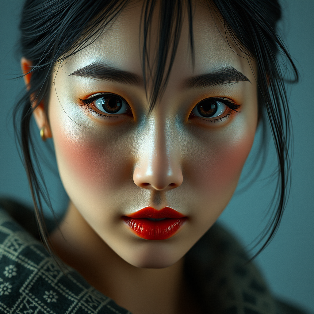 A captivating and realistic portrait of a beautiful Korean woman with symmetrical eyes, reminiscent of a kpop idol. The image is a high-detail RAW color photo, boasting ultra high resolution and sharp focus. Photorealistic digital art capturing the essence of realism, enhanced by cinematic lighting for depth and contrast. The masterpiece is crafted with hyper-detailed textures and rich colors akin to those captured by a kodak portra 400 camera with a f1.6 lens. Utilizing physics-based rendering and unreal engine for a lifelike appearance, the portrait conveys the finesse of professional photography akin to a d850 film. This digital artwork trends on platforms like Artstation, offering an 8K HD high definition that showcases its superior quality and detail, presenting a striking and authentic representation without imperfections, ensuring a refined and harmonious aesthetic.
