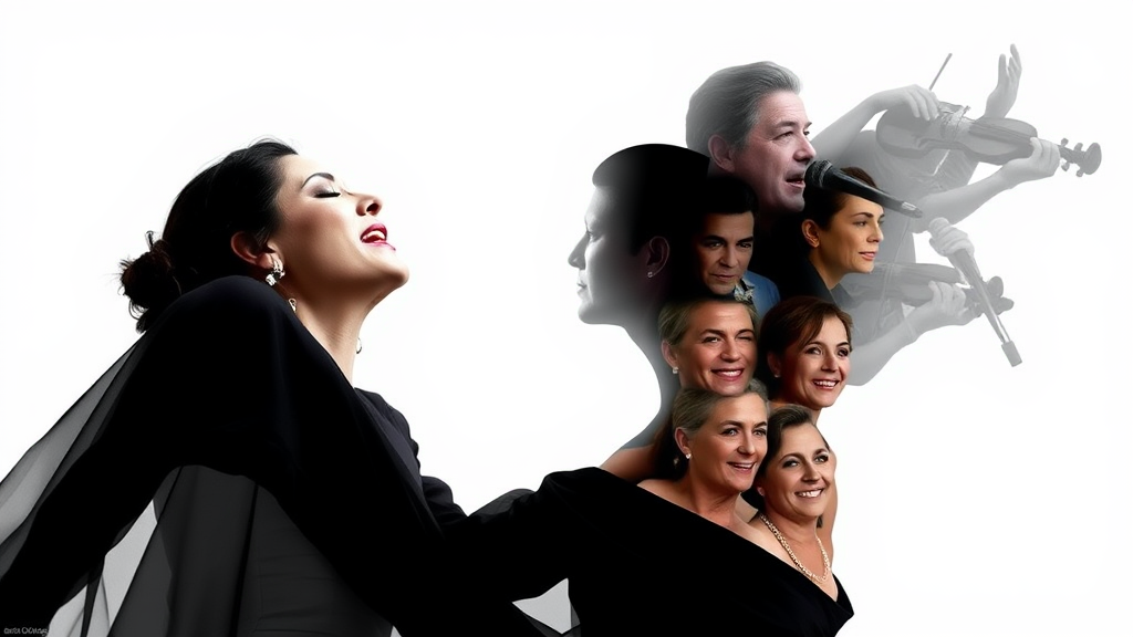 A captivating editorial photograph of a Rosalia lookalike passionately singing Flamenco, featuring a striking double exposure. Her elegant black dress subtly reveals the faces of iconic older Flamenco singers within its fabric, serving as a tribute to the art form's rich history. The crisp white background accentuates the contrast, resulting in a visually arresting composition fit for a Vogue magazine spread. The image artfully balances the contemporary and the traditional, celebrating Flamenco's enduring legacy.