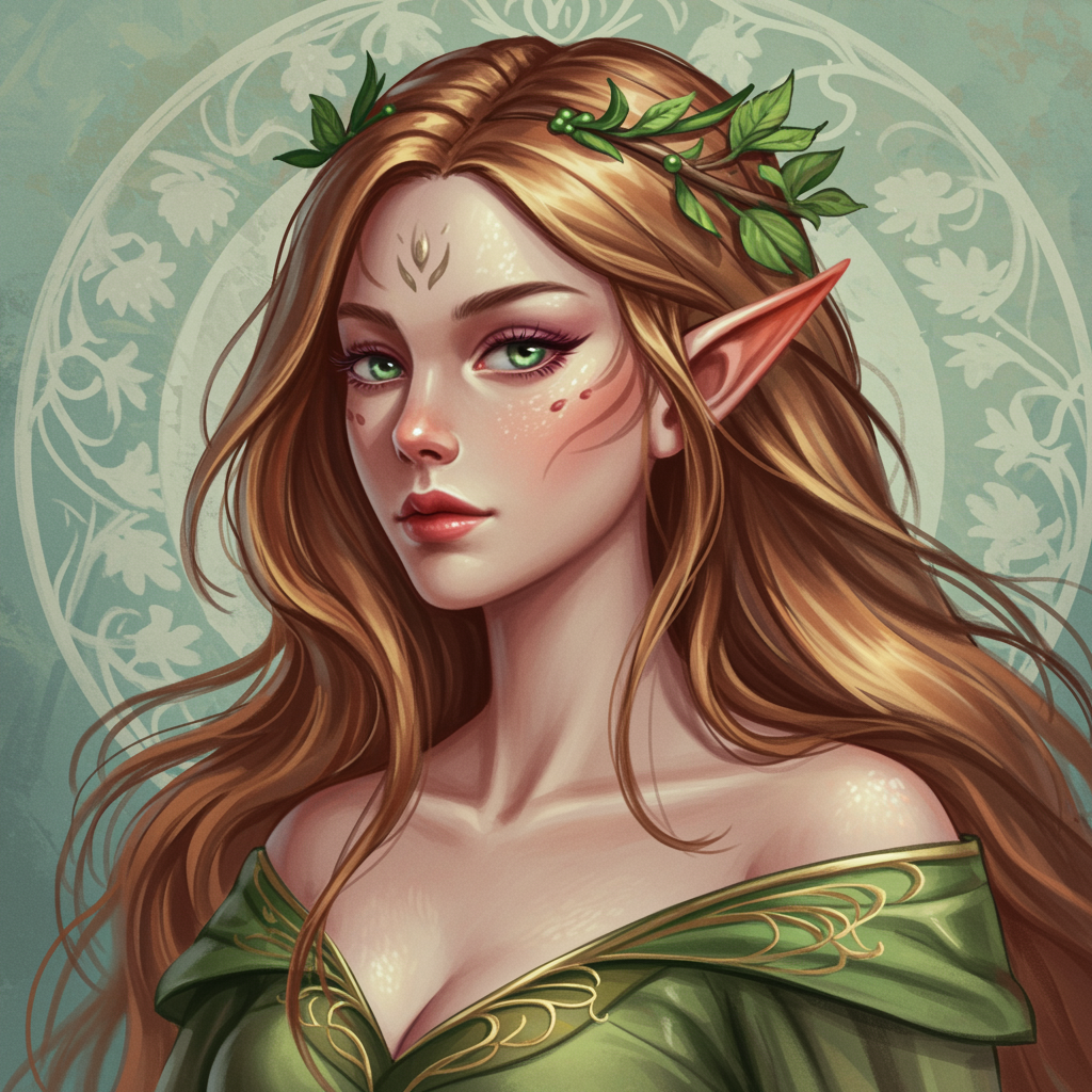 A captivating mdjrny-v4 style portrait of an ethereal female elf, showcasing her delicate features with intricate and elegant details, digital painting in high resolution. Inspired by the artistry of ArtStation concept art, the piece features smooth brushwork and sharp focus, reminiscent of the works by Artgerm, Greg Rutkowski, and Alphonse Mucha. Her flowing hair is adorned with subtle nature-inspired ornaments, evoking an 8k fantasy world ambiance. The composition radiates grace and mystical allure, capturing the timeless beauty and otherworldly essence of elves in a dreamlike, enchanted setting.