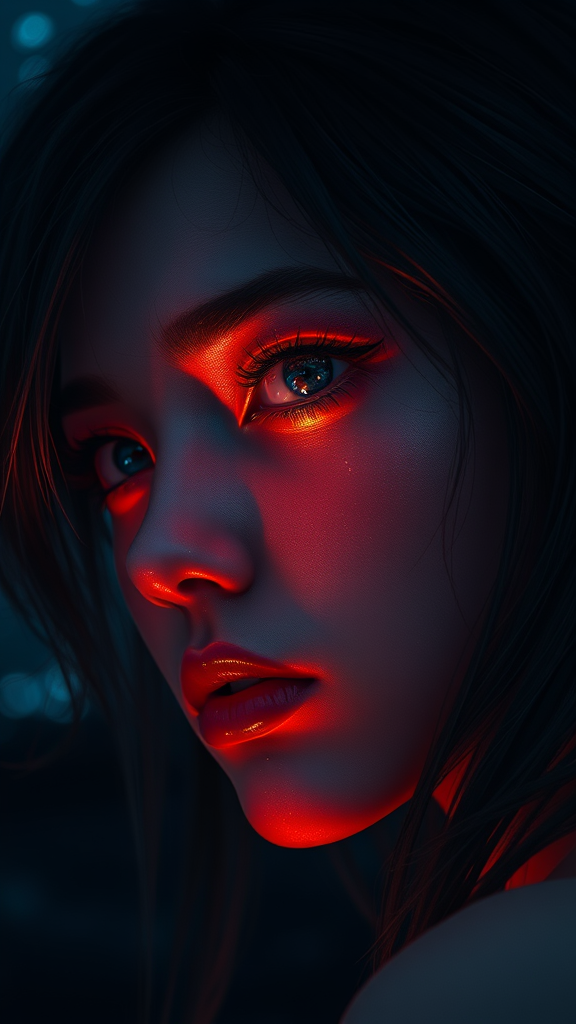A captivating ultra-detailed artistic photograph capturing a midnight aura under the night sky, showcasing a stunningly detailed face with a dreamy, glowing quality. The subject is backlit, casting glamorous glimmers and intriguing shadows. The artwork resembles an oil painting on canvas, with smooth brush strokes and presented in ultra-high-definition, reminiscent of an 8k render in Unreal Engine 5. The focus is ultra-sharp, highlighting intricate features. This masterpiece, inspired by artists like Alberto Seveso, Artgerm, and Loish, blends elements of sci-fi and fantasy, delivering an epic visual experience. Its composition follows the golden ratio, creating a harmonious balance and resembling a matte painting-style movie poster. The piece is trending on platforms like CGSociety and ArtStation, merging influences from H. R. Giger and Beksinski to achieve a highly detailed, vibrant, and cinematic quality. While the character is rendered with ultra-high precision, it maintains a slightly surreal and fantastical aura, encouraging imagination and curiosity.