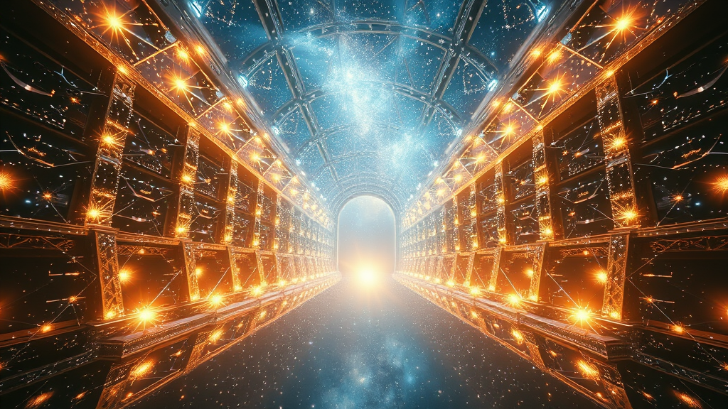 A celestial basilica shimmering with countless luminous stars, stretching into the cosmic abyss, capturing the essence of divine majesty in the vast expanse of space βar 9:16.
