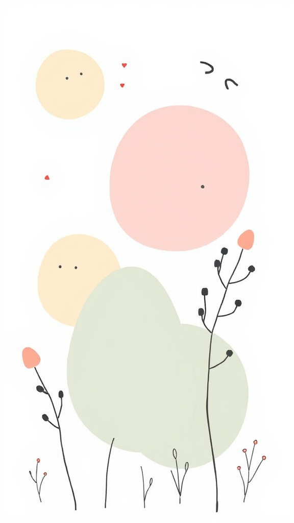 A charming clipart featuring whimsical organic shapes in the style of Jon Klassen, set in a soft, desaturated pastel color palette, perfect for nursery decor, against a clean white background, showcasing gentle, airy elements that evoke a sense of calm and imagination.