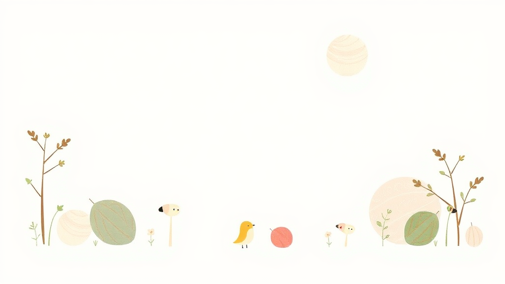 A charming illustration featuring organic shapes, inspired by Jon Klassen's whimsical style, using a soft and gentle pastel color palette. The scene conveys a light and airy atmosphere suitable for a nursery setting against a clean white background, capturing a sense of simplicity and warmth.