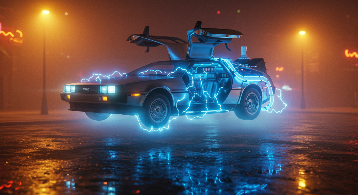 A Cinematic Wide Angle Shot Of The Iconic Delorean Dmc