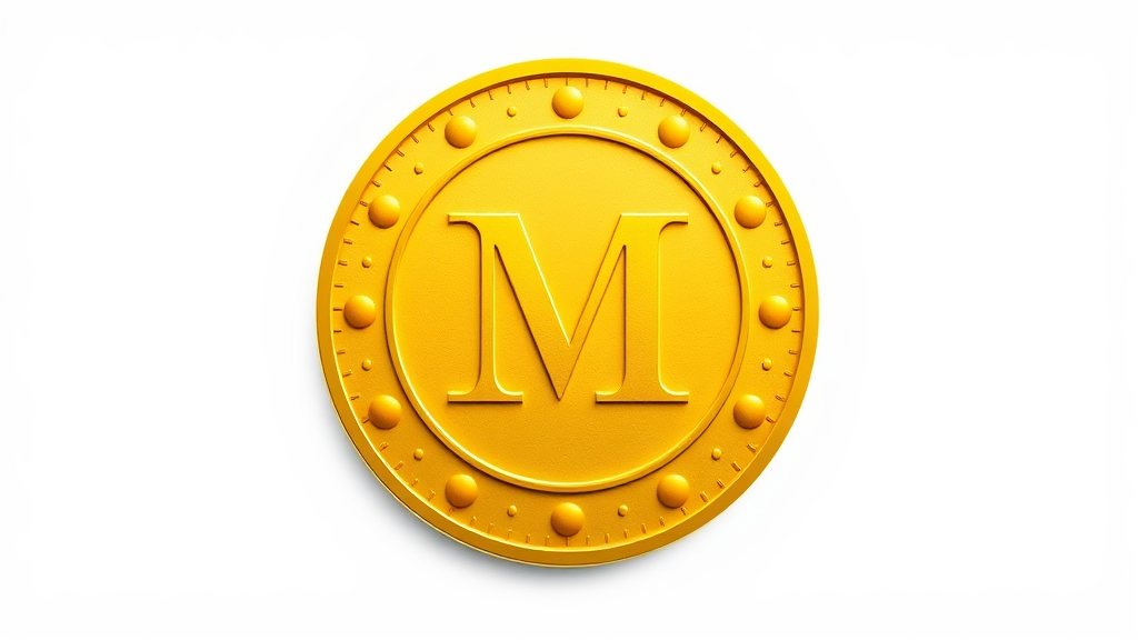 A classic emblem featuring the letter M at the center of a coin, rendered in a warm yellow color palette with gentle gradients, set against a pristine white background, incorporating a touch of elegant detailing for a timeless appeal.