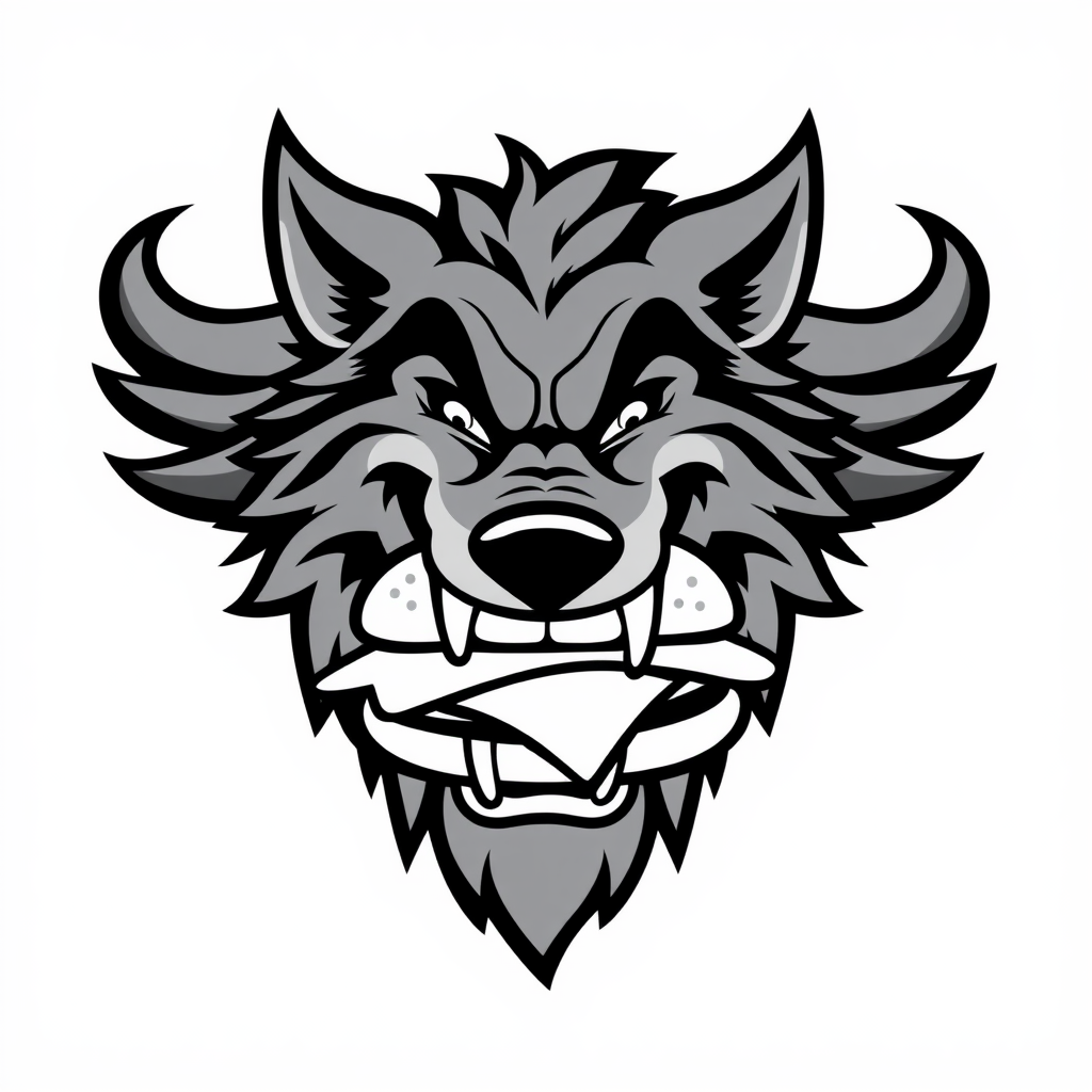 A clean, minimalistic vector logo depicting a stylized Wolfman with exaggerated features, joyfully biting into a burger. The design emphasizes bold, flowing lines to define the Wolfman’s fur and expression, while the burger is simplified to essential shapes. The overall color scheme is kept monochrome, using black vector outlines on a white background to enhance contrast and simplicity.