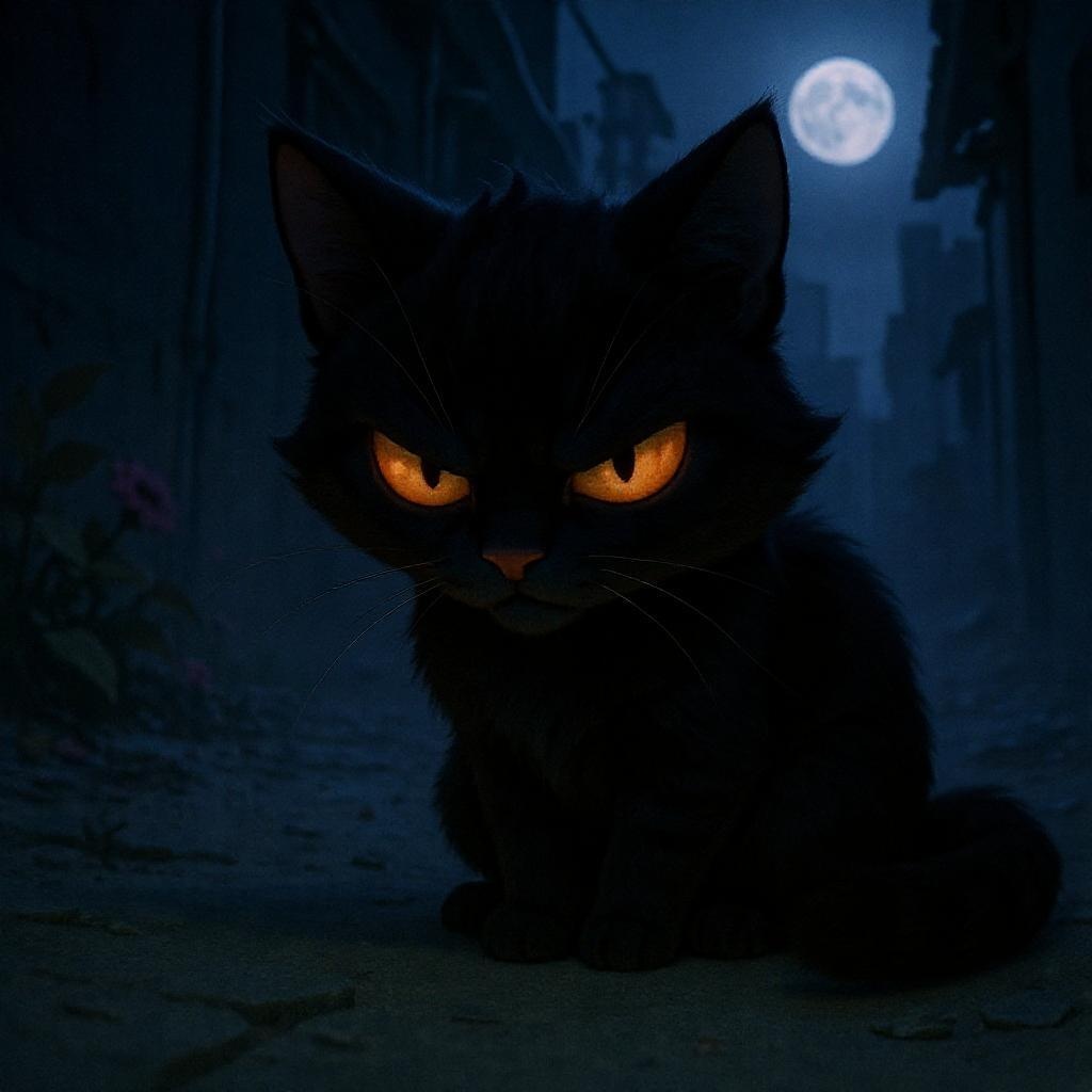 A clever and cunning cat with a mischievous glint in its eye, silently plotting its next playful adventure in the moonlit alleyways.