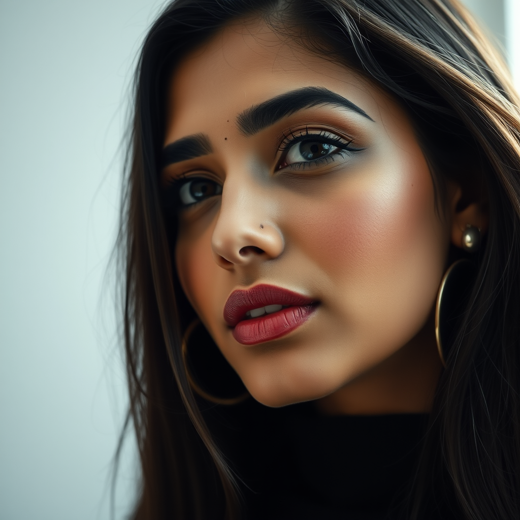 A close-up portrayal of a Bollywood actress reminiscent of Disha Patani, capturing her beauty with elegance and allure. The composition reflects the bold, abstract influence of Franz West, while incorporating the delicate smoothness typical of Guillaume Seignac's work. The scene is akin to intimate webcam photography, employing a subtle blend of light whites and blacks to create a refined double-tone effect. The ambiance balances sharp yet gentle lines, emphasizing the graceful features of the subject, encapsulated in a uniquely inspired cinematic moment.