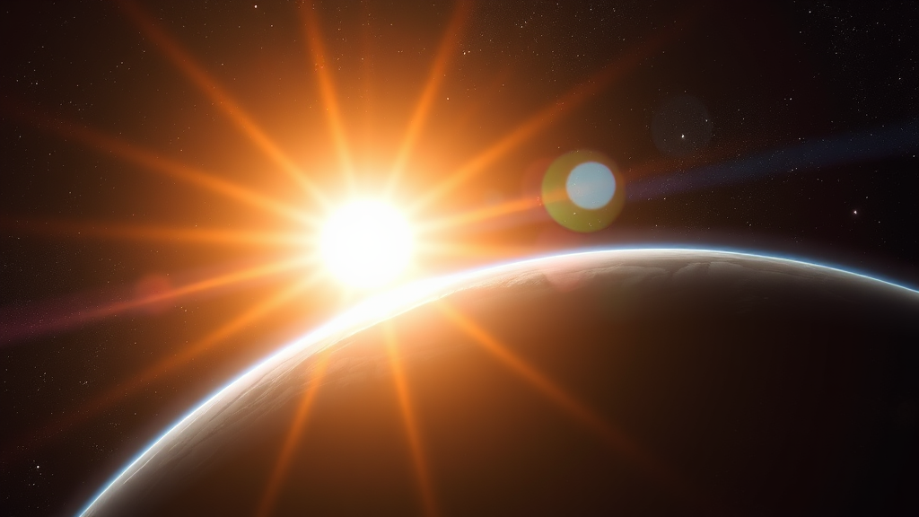 a cosmic view of the sun shining brightly from the depths of space, earth's silhouette in the foreground, capturing the majesty of the universe in ultra-high definition 8k detail, with ethereal solar flares and soft shadows highlighting the curves of our planet