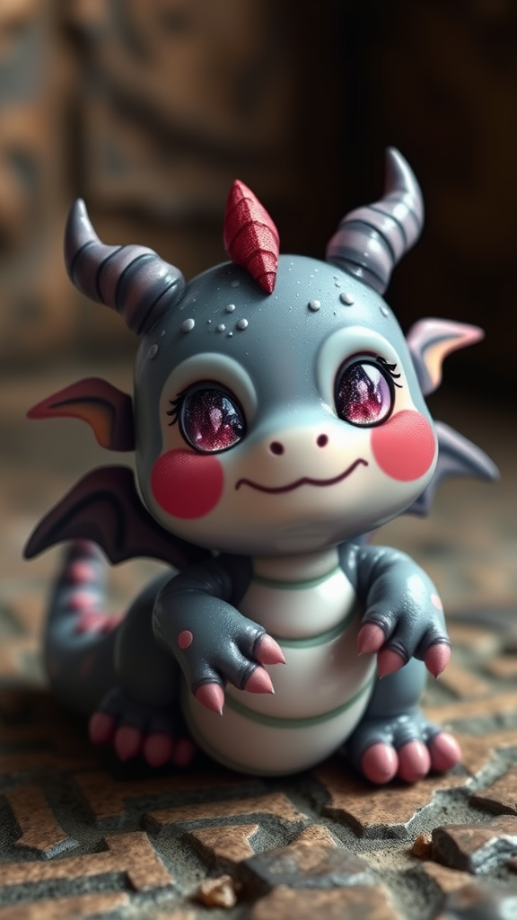 A delightful and charming dungeon slime with rosy cheeks and sparkly eyes, resembling a tiny dragon with cute wings and a playful, bouncy demeanor.